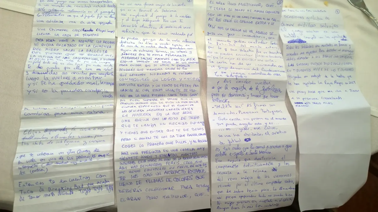 Este año repitió con nosotros un gran amigo, Alejo Civantos (@alejocamaleon) y como es costumbre desde 2006 en cada KDD donde ha asistido, se hizo el juego de la servilleta. El juego consiste en ir rellenando un papel (en sus inicios era una servilleta, de ahí el nombre :P) escribiendo dos lineas, que serán continuación de la ultima que haya escrito otra persona, con lo primero que se te pase por la cabeza, lo que sea, siguiendo o tratando de seguir el contexto de la ultima frase. Como os podéis imaginar, salen cosas muy loquisimas :D