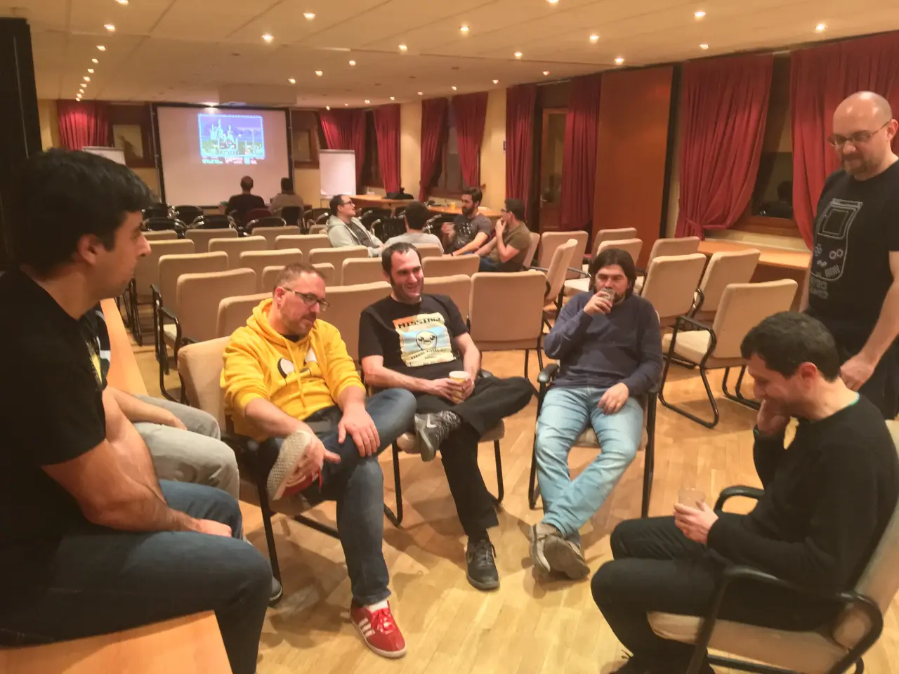 80 frikis amantes de los videojuegos, la mayoría de ellos desarrolladores a varios niveles, tanto profesionales como amateurs, muchos locos de lo retro a nivel de juegos y ordenadores, encerrados durante todo un fin de semana en un apacible hotel de la sierra madrileña, compartiendo experiencias, anécdotas y conocimiento. En pocas palabras, esto es el Freakend! (el de videojuegos, no el de mobile :P)