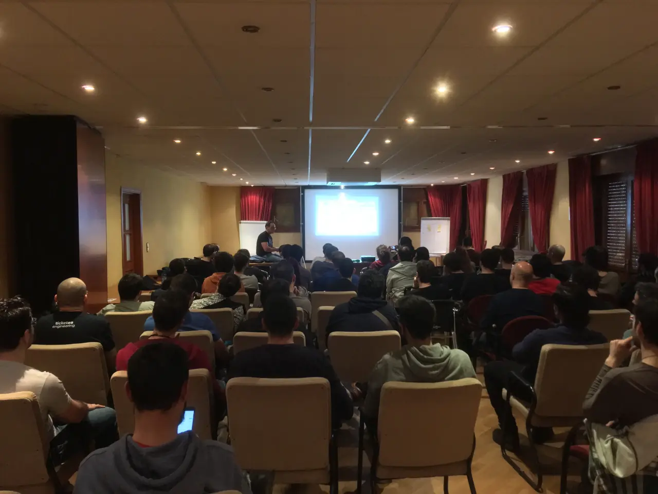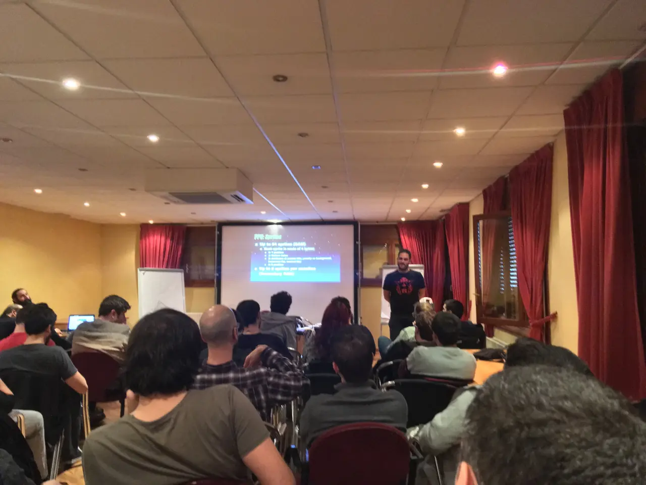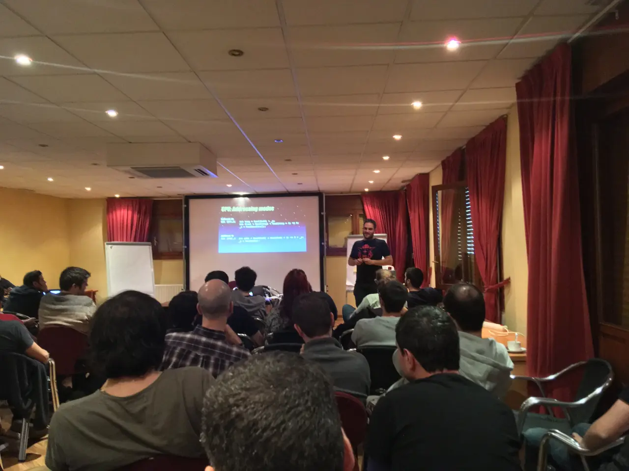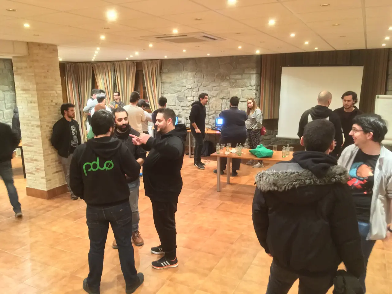 Este año repetimos de nuevo en el hotel Las Gacelas, en Becerril de la Sierra, Madrid. El año pasado la experiencia fue genial como lugar para hacer las charlas así como por el resto de contenido del evento y sin olvidar la calidad del alojamiento y la comida. El evento comenzó como años anteriores, en la cafetería del hotel llenándose con la gente que iba llegando durante toda la tarde. Ahí empezó el networking del evento, volviendo a ver caras de viejos amigos de toda la vida y de gente que casualmente solo coincidimos en este evento bien sea por la distancia que nos separa o bien por motivos de trabajo y falta de tiempo. Nada que una buena cerveza no solucione :)