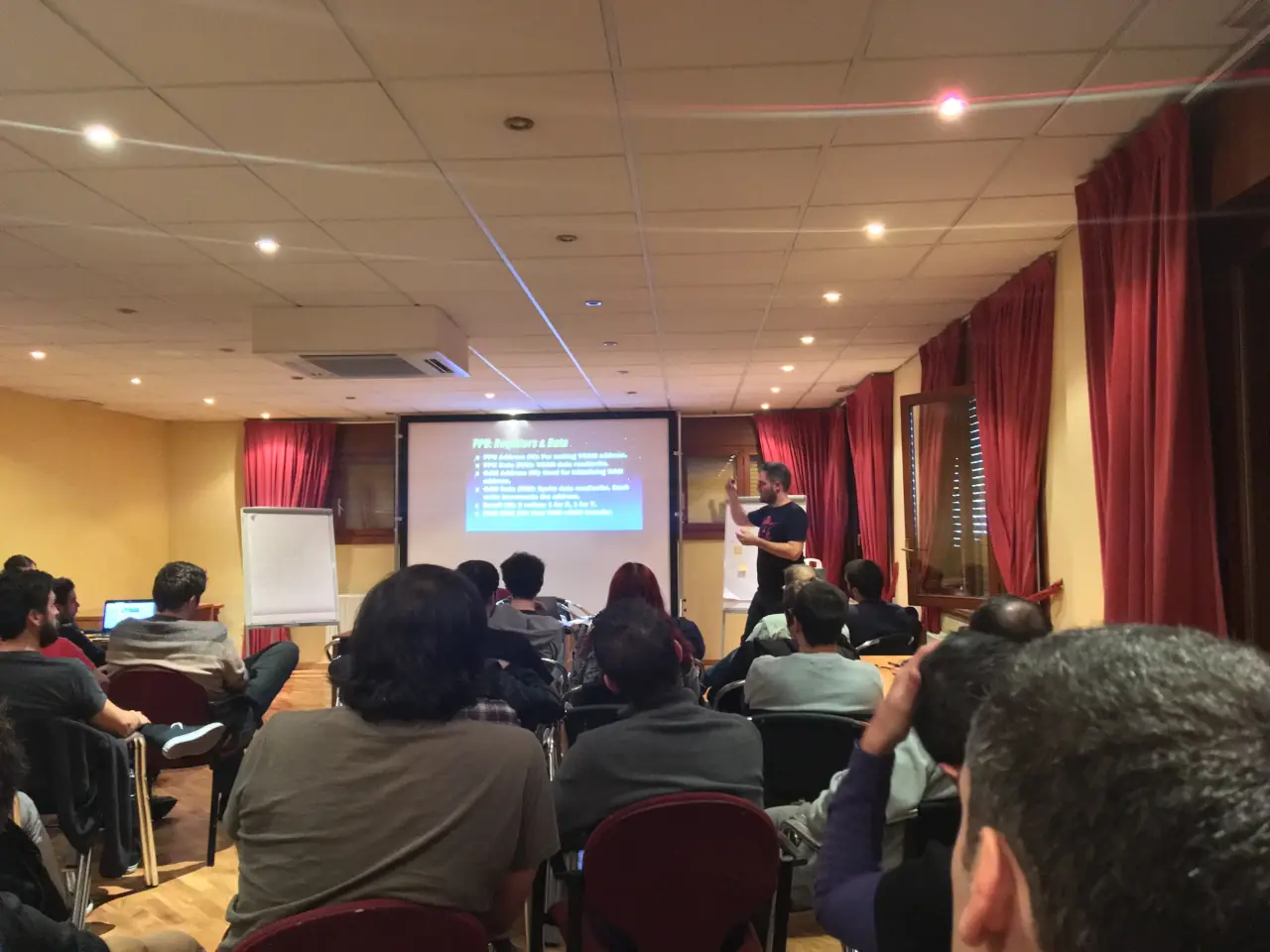 El nivel frikismo de este año se mantuvo a niveles astronómicos, como no podía ser menos. Este año de nuevo nos sorprendieron con charlas tales como la de desarrollar un emulador de la NES, cortesía de Kike Alcor (@SuperKeeks), la segunda parte de la charla del año pasado de Carlos Hernandez Gomez (@k4rliky, con su interminable nick en Twitter ;P) sobre hacking de juegos online con ingeniería inversa o la charla de como diseñar un sistema de combate en videojuegos, primera charla que da Cristina Ramos (@SaffronCR), toda una veterana en esto de desarrollar juegos aquí en España :)