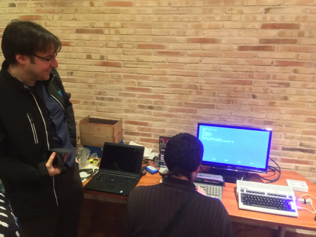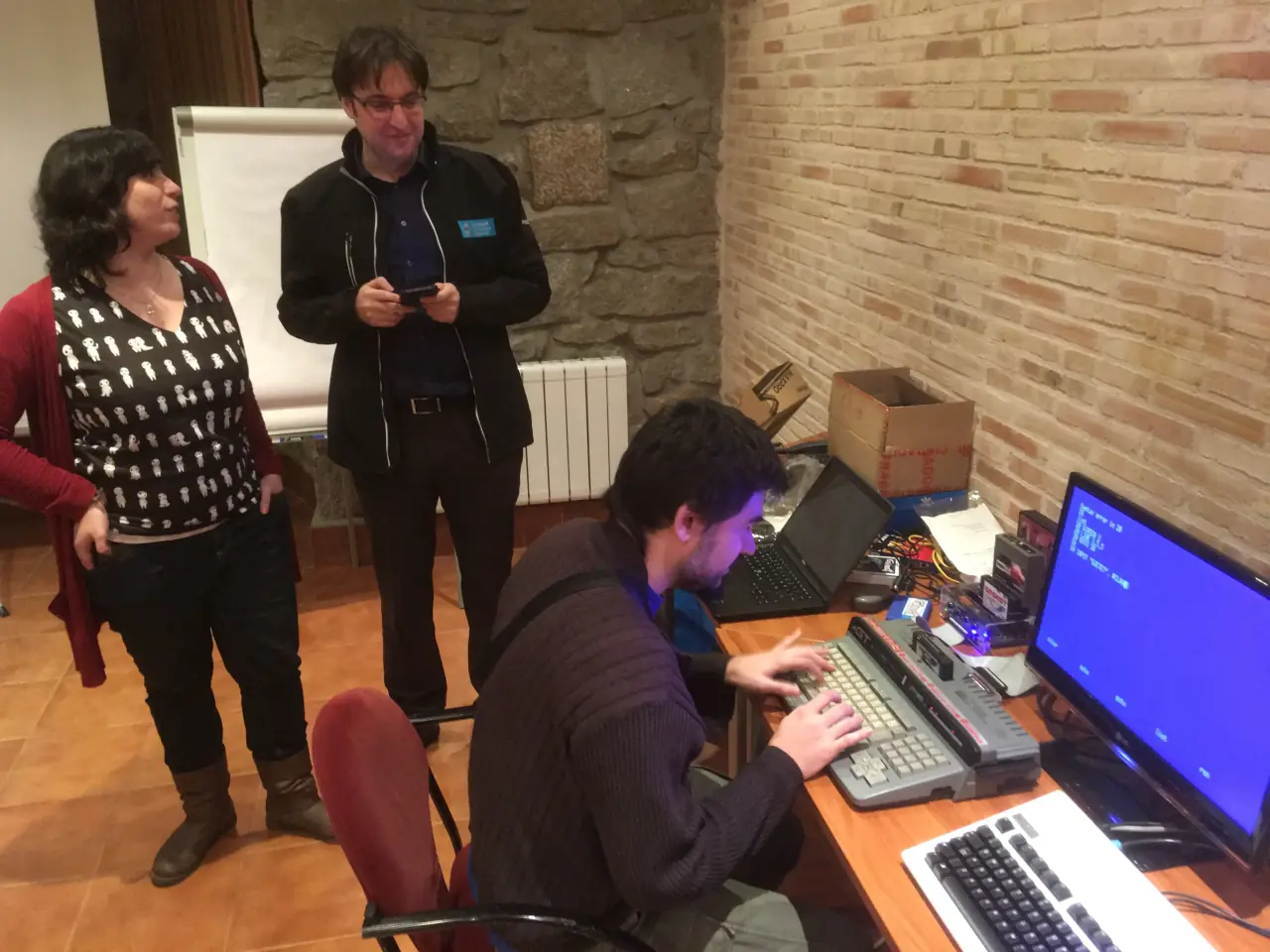 Carlos Milan (@cmilanf), fiel a su espíritu, nos deleita un año más con su MSX y su Amiga 600 hypervitaminado. A parte de sesiones de programación en MSX-Basic, donde alguno puso a prueba su memoria programando con este interprete, pudimos probar en vivo y en directo la versión para MSX, en cartucho físico, de Mini-Ghost, la versión retro de Ghost 1.0 del creador de Unepic, Francisco Téllez de Meneses (@unepic_fran):