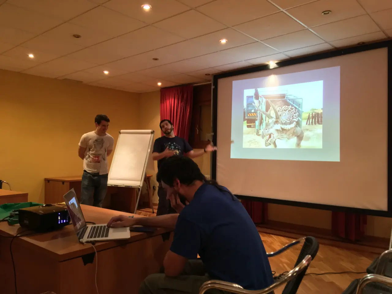 Otra de las novedades, una de las más divertidas de este año, ha sido el Karaoke de Power Points. Y ahora estarás pensando… ¿!pero que cojones es un karaoke de Power Points!? xD Básicamente es un juego en el que un voluntario sale al escenario para realizar una breve charla sobre un tema sin saber cual y usando una presentación de varias diapositivas al azar, cada cual más bizarra e inconexa con la anterior y cuyo tema solo se muestra en el titulo de la primera. Aquí se monto la fiesta durante un buen rato, deleitándonos con grandes actuaciones como las de Carlos Milan (@cmilanf), quien uno de los asistentes inmortalizo sus dos soberbias improvisaciones xD
