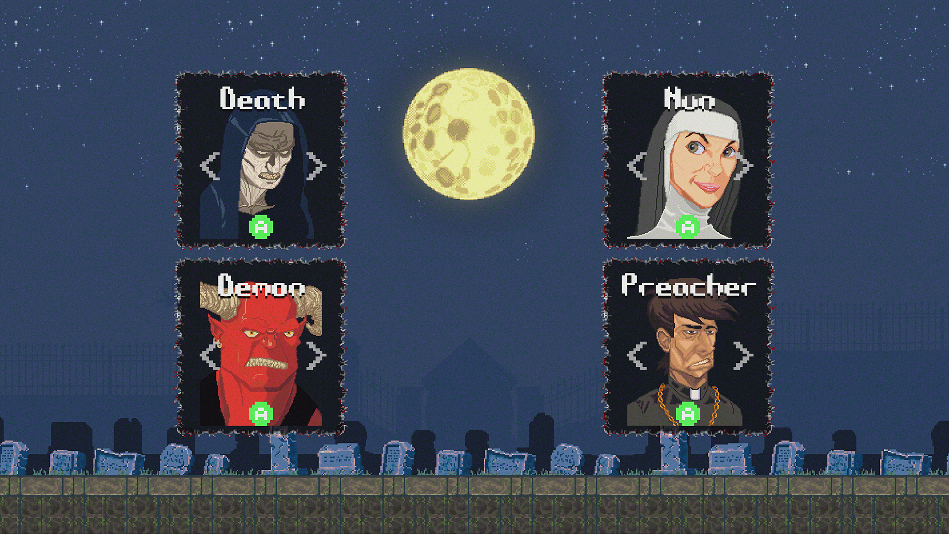 The ultimate couch fragger gibfest! Armed with a powerful boomstick and bullet deflecting shield, up to four players wage unholy war against each other as they compete for souls in nine different local multiplayer game modes (wave mode for 1-2 players also included) across four realms and 40 arenas. This is demonic local multiplayer action at its bloodiest!