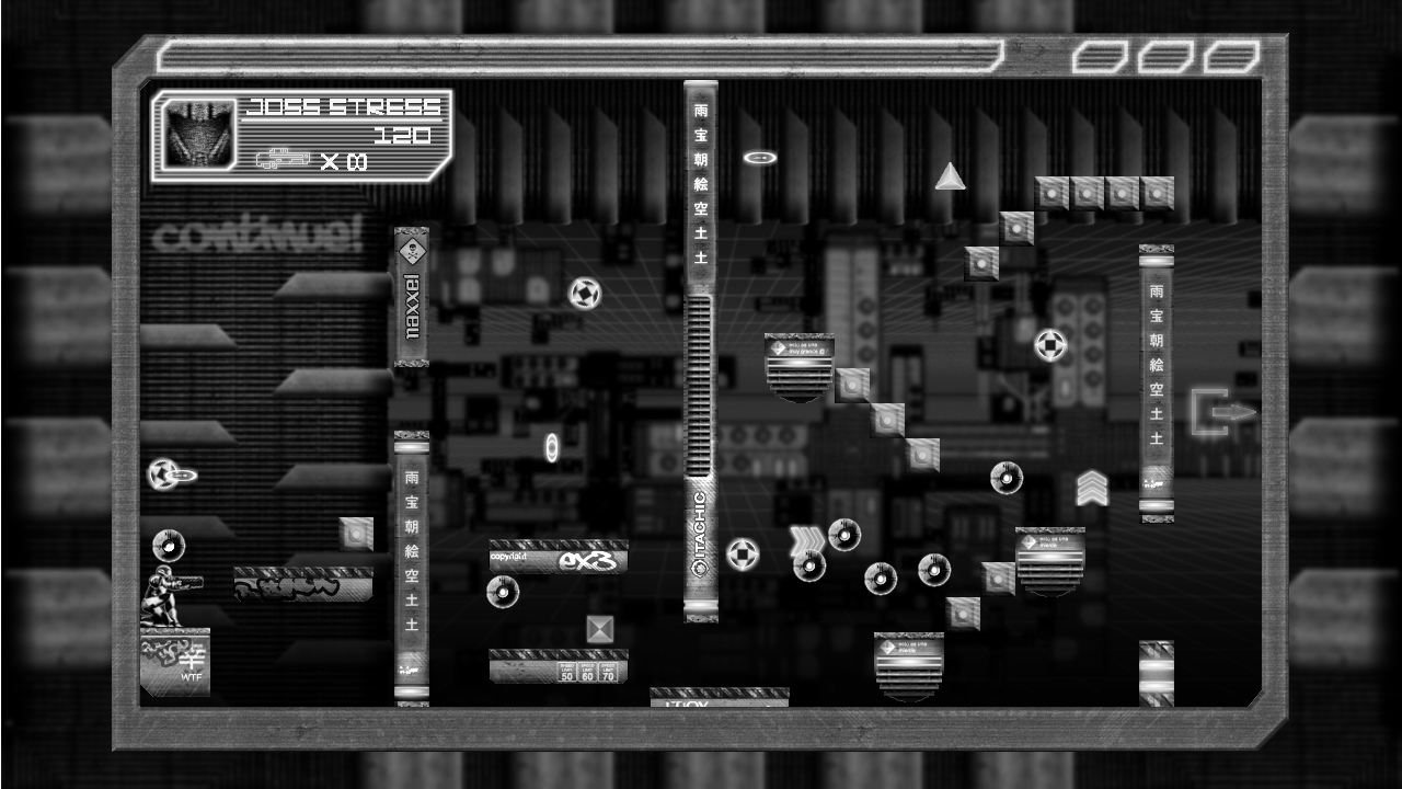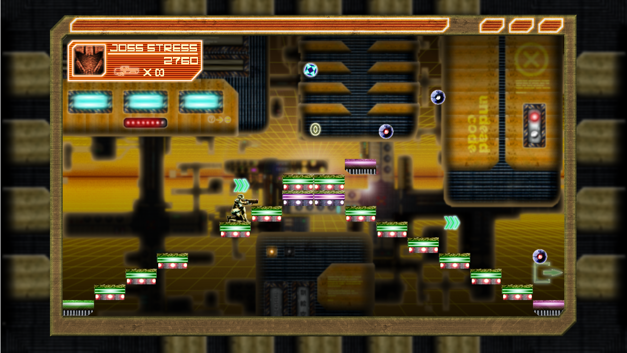 In addition to programming the game and the engine, other tasks where I been involved was VFX enhancement in the final art in scene, simulate some post-process effects, like the glitch effect, UI visual design of the main menu and their elements, several background live visual elements and effects in most of the levels, and guide the artist in how to prepare and optimized the final assets to use in the game.