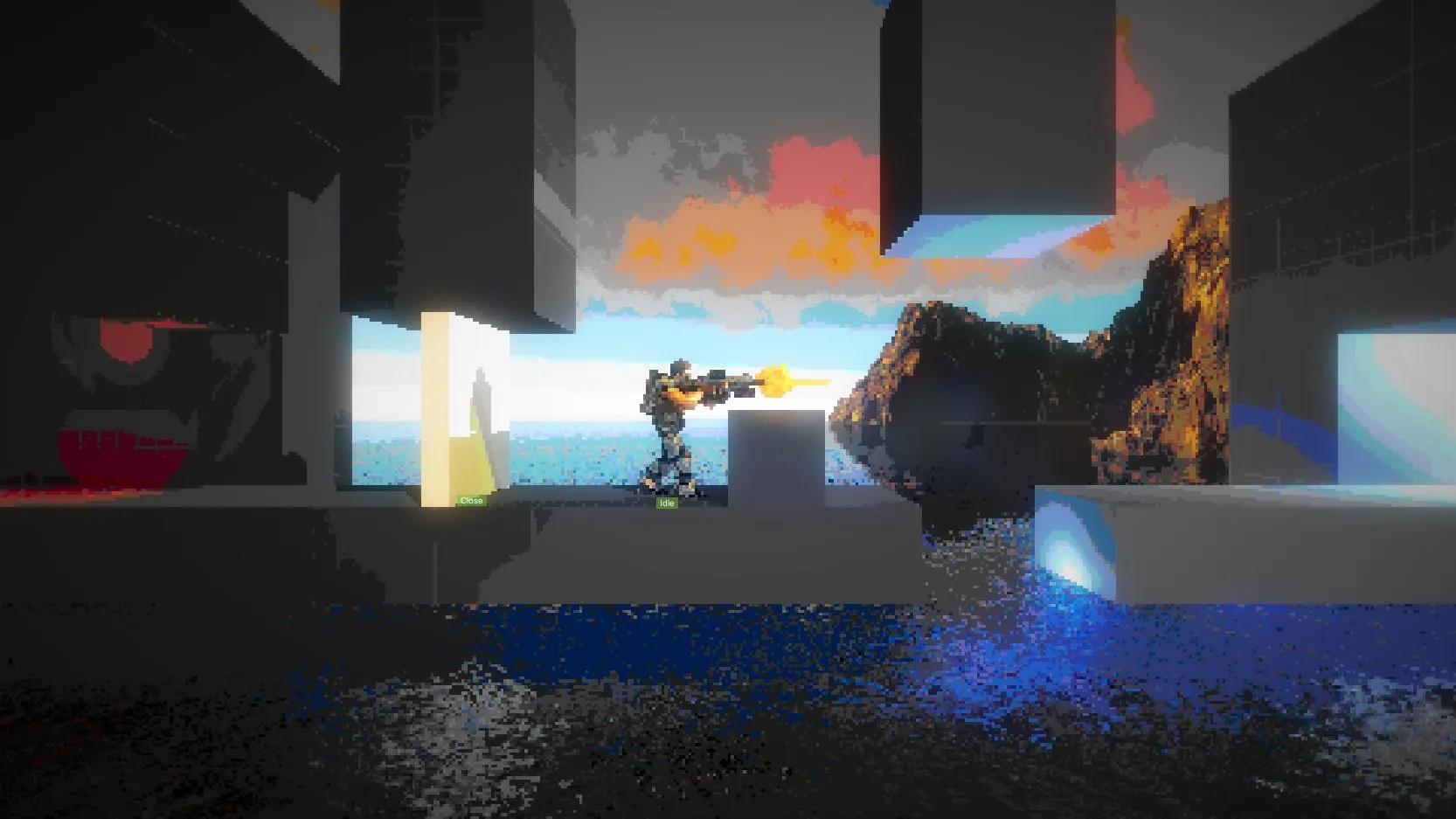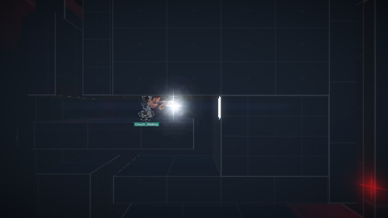The prototype implements a functional character player with some of basic states: idle, runing, sprint, jump, crouch, crouch walking, shoot, reload, falling damage and death by high falls. The development was focused mainly on the player implementation and the visual style for future game levels (mainly lighting tests and retro look & feel). No enemies or items/power-ups implemented.