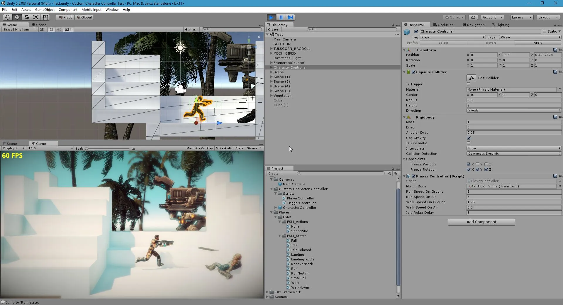 This version was intended to be more simple in the mechanics, more old-school in a way as was Prince of Persia or FlashBack, mainly to avoid to deal with complexities of the IKs and free aiming. This time, I implemented my own FSM in code instead of use PlayMaker.