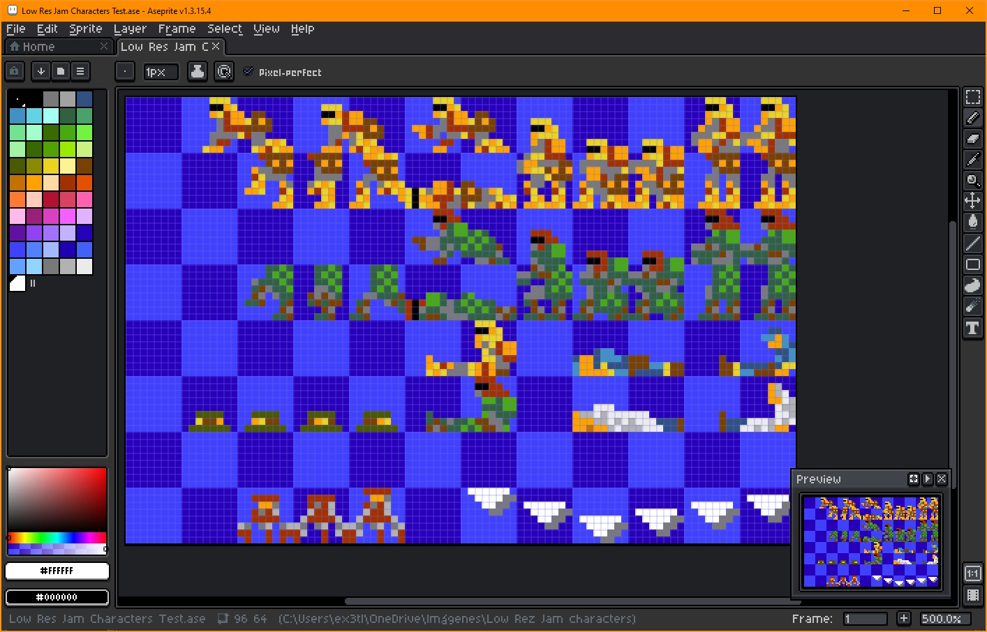 To create the sprites I decided to try Aseprite, and the experience was outstanding! (in comparison with MS Paint, the editor I used during years to create pixelart 😛). I reach to design the player character with his animations, the main enemy character, similar to the player, and few more characters as enemies, NPC corpses or a “feedback” animated mark.