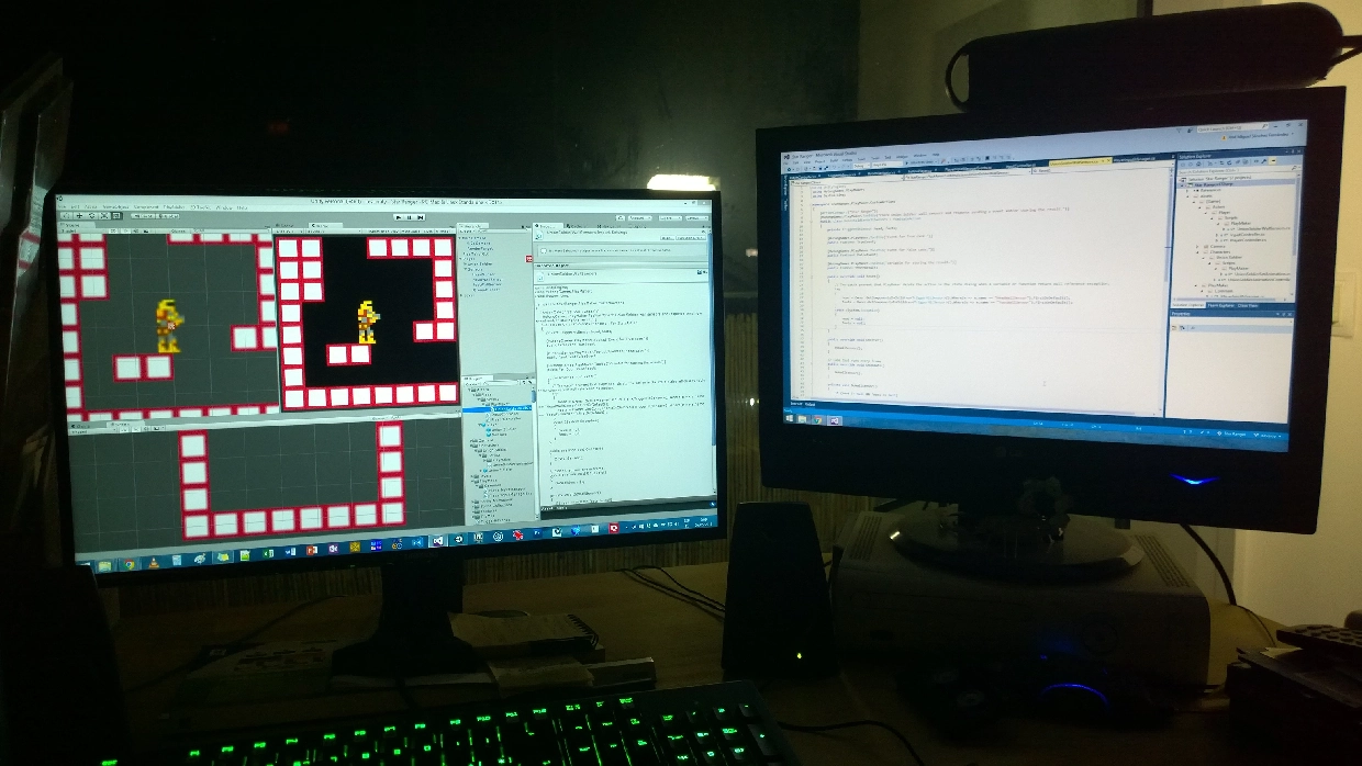 But because I had a busy april month that year, I can’t dedicated much time to the project, sum to this that I didn’t have much experience with Unity back then (was the best option for a quick development instead of use MonoGame as alternative) and the extra complications with Unity these days with all relative about 2D native support (I used 2D Toolkit plugin to cover this area) I only developed a minimal set of features like the pixel-perfect camera system, emulating the room by room view of old games like Prince of Persia, the basic movements of the player, and a simple test level with a few of rooms.