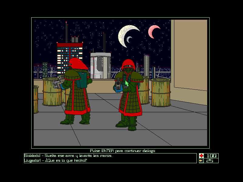 A year after The Light Star Adventure project I decided to start a new version but implementing new ideas, like the capacity to create scrollable scenes, to ease create more rich and complex scenarios in the same place without the needed to implementing different views (except for backwards or zooms like in the original game).