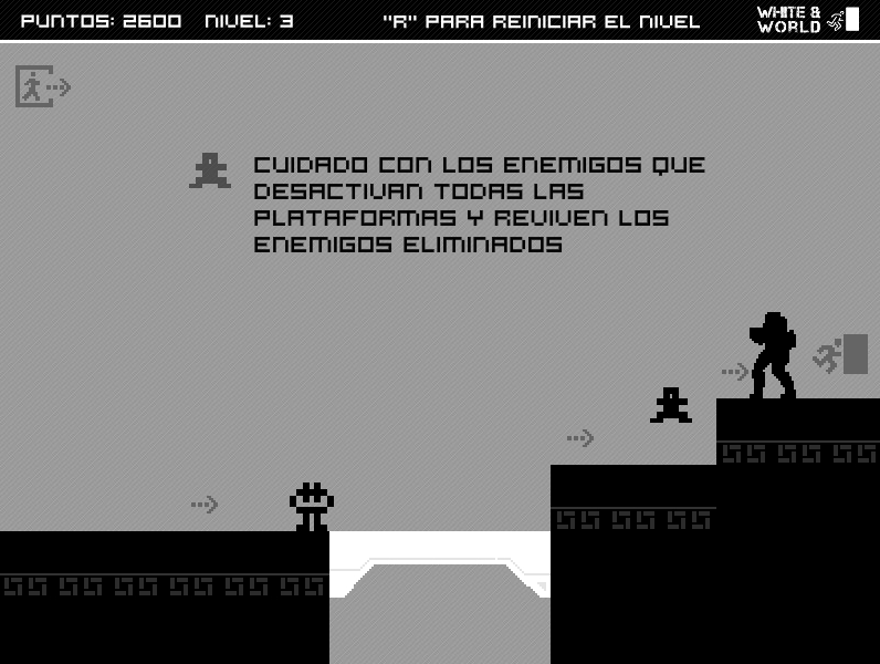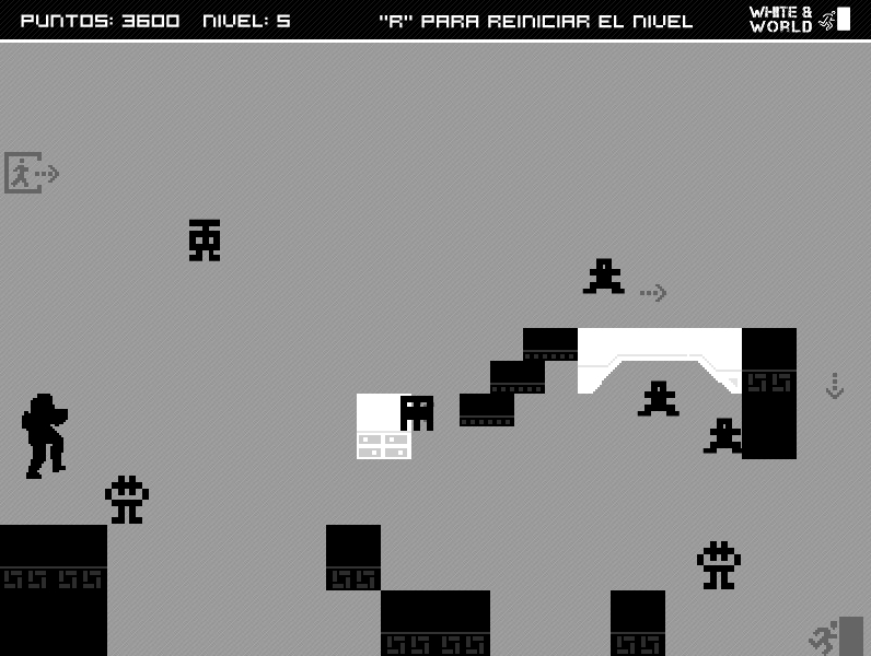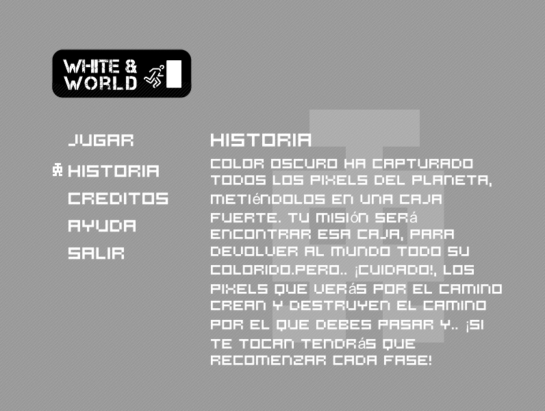 The restrictions of the gamejam was: black & white, puzzles and create & destroy.