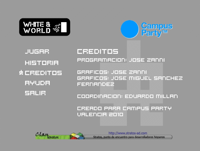 A project for the 72h gamejam in GameDev/DesarrolladorES area of Campus Party Valencia 2010 and my fourth Lan Party that I assisted with my coleagues from Stratos-AD. A 2D platformer-puzzle adventure with the mechanic of create and destroy the path to reach the exit by the action of eliminate the enemies in the correct order.